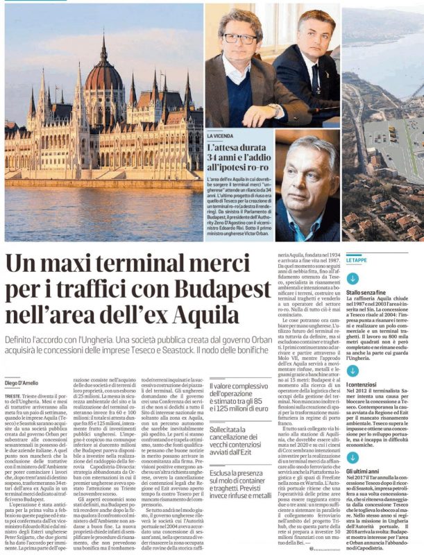 Investimento da 60-100 mln, firma acquisto terreni a luglio. BELGRADO – L’Ungheria “creerà una base logistica” al porto di Trieste “per permettere alle imprese magiare che esportano oltremare di effettuare le spedizioni velocemente e senza impedimenti”. Lo ha detto oggi il ministro ungherese degli Esteri e del Commercio estero, Péter Szijjártó, intervenendo al V4+ Logistics […]